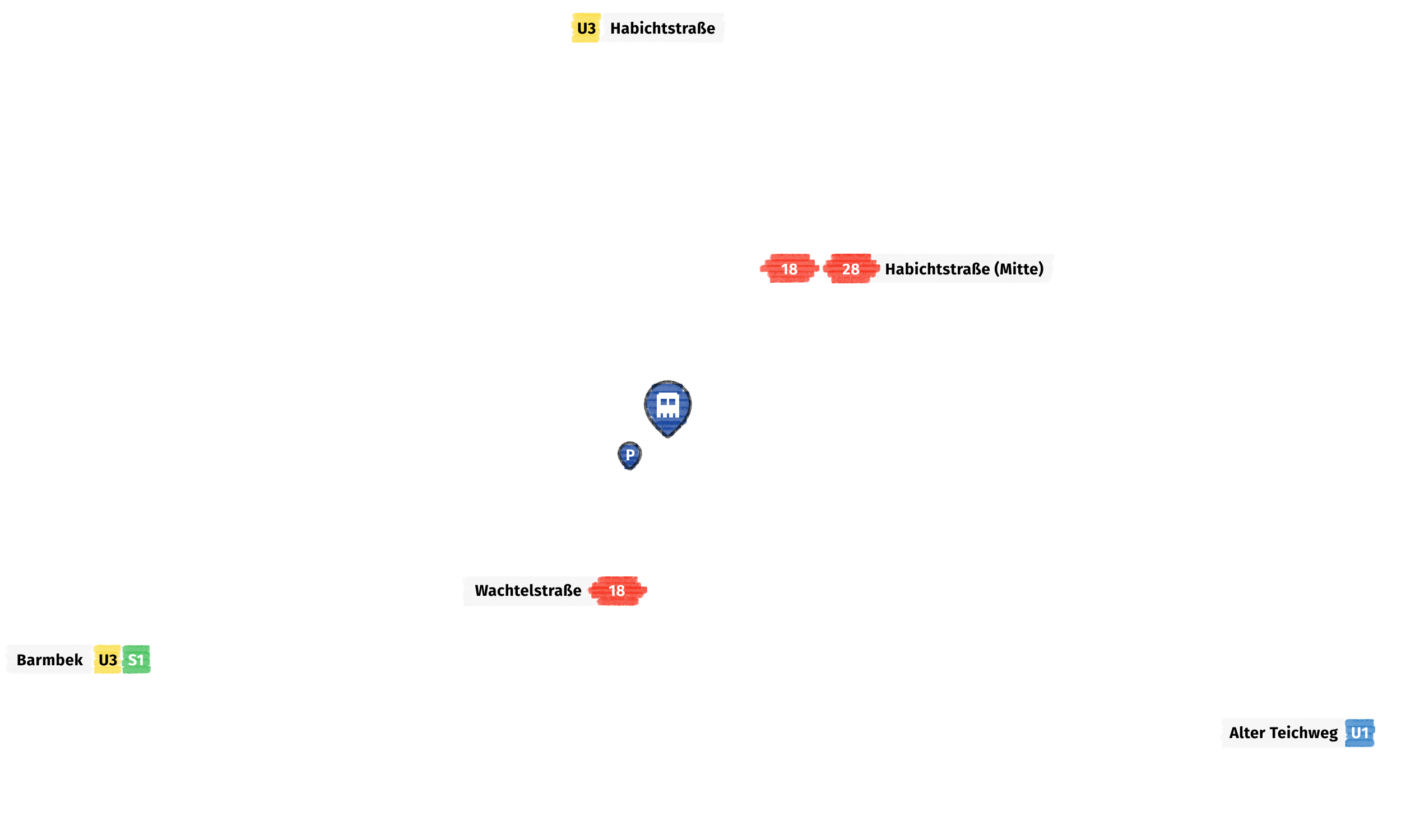 Bei einer Anreise mit Bus & Bahn sind die nächstgelegenen Haltestellen „Habichtstraße (Mitte)“ (Buslinien 18 & 28) sowie „Habichtstraße“ (Linie U3).